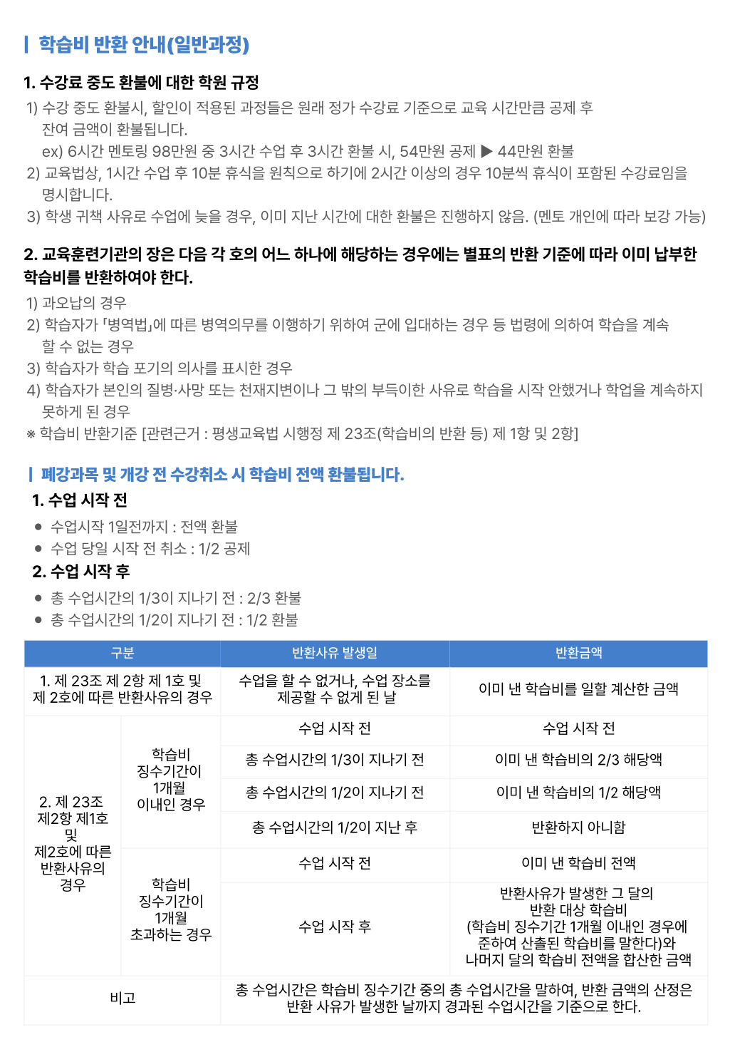 마이멘토는 아래와 같은 규정에 따라 환불절차를 규정합니다.